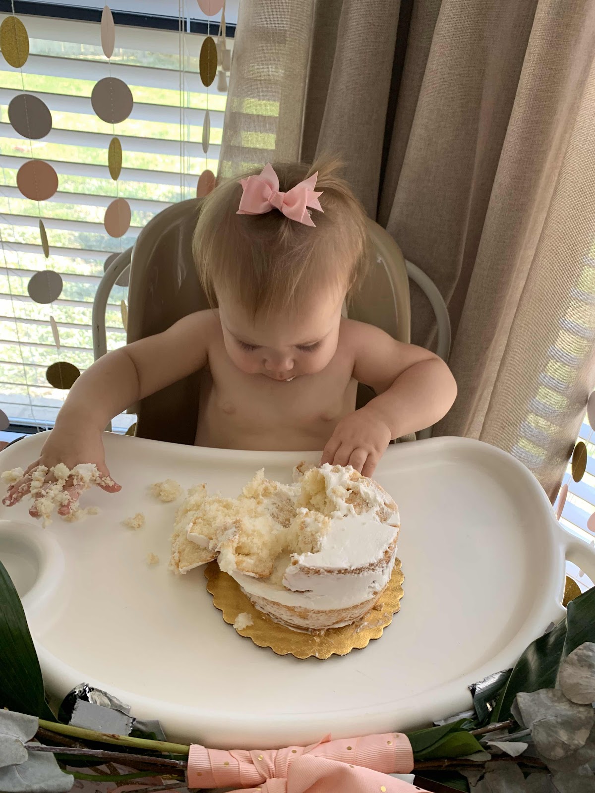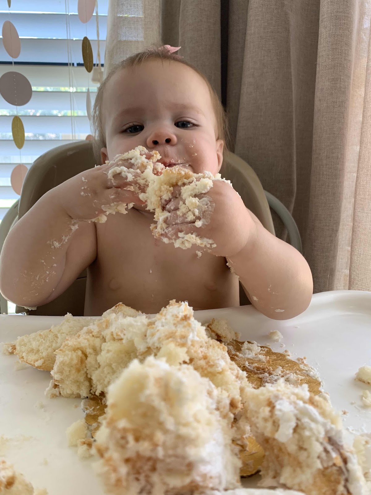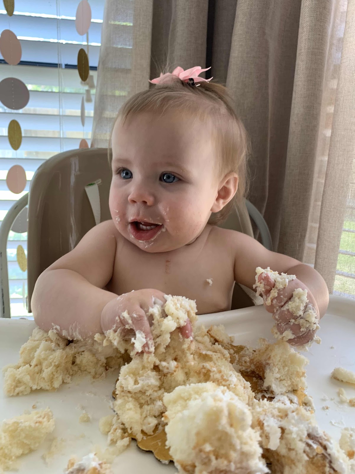 When we put your cake in front of you at your party you took a second and then dug right into it! You were not gentle and smashed right through that thing. Your Aunt Nene, remarked that you acted exactly as how you would want a baby to with a cake by really smashing into it!